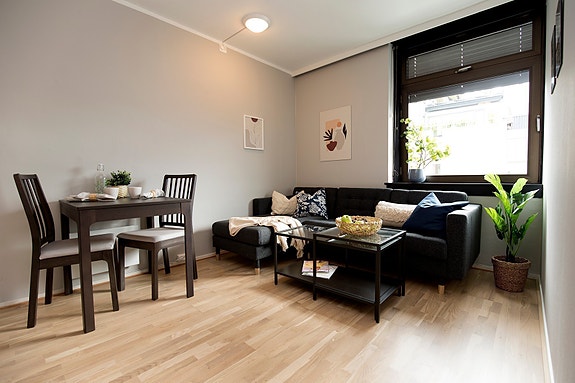 Månedlig leiesum på kr 15 000,- inkluderer internett via fiber og parkeringsplass, sameiet har også egen vaktmester. Leietaker er selv ansvarlig for å tegne strømavtale. Leiligheten leies ut møblert, noe som inkluderer kjøleskap med fryseskap, komfyr, oppvaskmaskin, vaskemaskin, seng, TV, spisebord med stoler og sofa med sofabord.