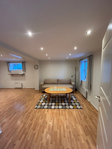 Hybel til leie i et rolig og grønt boligområde med gåavstand til stranda. Kort vei til offentlig transport, med ekspressbuss til Oslo.