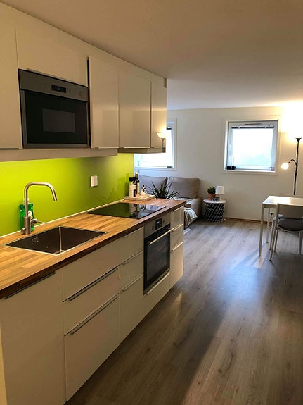Leiligheten er lys og trivelig, og holder god standard. Åpen stue/kjøkken-løsning og romslig soverom.