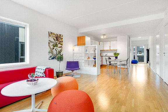 Leiligheten holder god standard med lyse overflater, store vinduer og fine lysforhold. Kjøkken og bad har funksjonelle løsninger som gjør hverdagen enkel. Boligen fremstår ren, ryddig og lett å trives i.