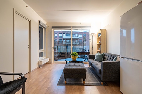 Velkommen til Innspurten 6A - en lys og lettstelt 2-roms i 6. etasje med heis og trivelig utsikt mot grøntareal og tursti. Åpen stue-/kjøkkenløsning med gode lysforhold og utgang til solrik balkong på 7,6 m². Soverommet er skjermet og rolig, badet er flislagt med moderne standard, og intern bod er smart innredet som hjemmekontor - perfekt for fleksibel bruk i hverdagen. Et energieffektivt og urbant hjem med nærhet til både natur og byliv, og med Helsfyr T-bane, dagligvare og idrettstilbud få minutter unna.