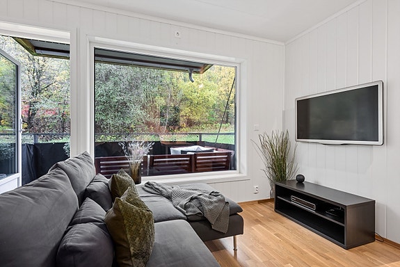 Boligen har dørtelefon, opplegg for kabel-tv og bredbånd.