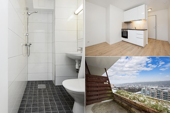 Leiligheten består av stue/kjøkken, bad og soverom. Spotter i alle rom og laminat på gulv i stue/kjøkken og soverom.