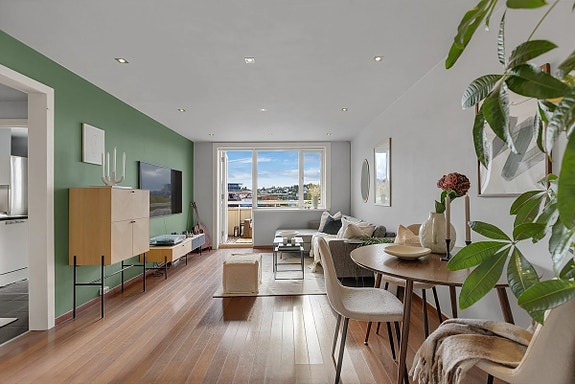 1. etasje, på 63 km, lys leilighet med 2 soverom, stue med åpen kjøkken, bad, gang, stor terrasse på 33 km, garasjeplass, bud i kjeller , kan vurderes korttidsutleie og langtidsleie, kan leies ut delvis eller umøblert, ledig fra 20/12-3025, varmtvann, fyring/ TV og internett inkludert, depositum kan diskuteres fra 2-3 mnd