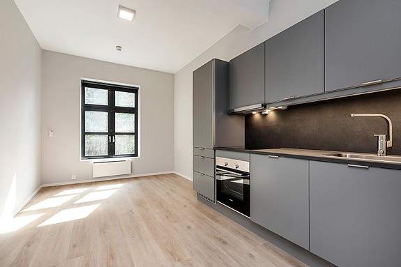 Umøblert. Kjøkkenhvitevarer medfølger.