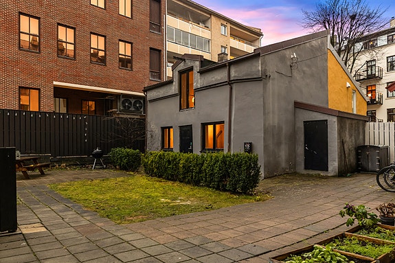 I en stille og rolig bakgård ligger denne sjeldne bygningen.
