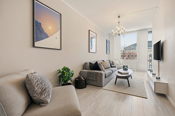 Leiligheten har oppgraderte flater i de fleste rom og fremstår tiltalende og har en god standard. Det er stor balkong i toppetasjen, med nydelig utsikt og mye naturlig lys. Denne er også vestvendt, og har meget gode solforhold.
