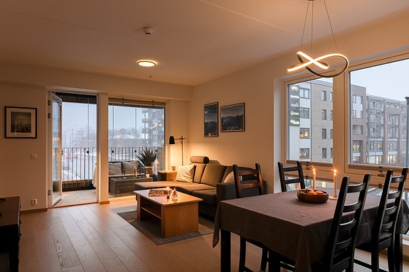 Velkommen til en lys og strøken 4-roms med attraktiv beliggenhet i Krydderhagen. Leiligheten stod ferdig i 2018, og holder en gjennomgående god standard. De store vindusflatene sørger for rikelig med naturlig lysinnslipp. Leiligheten forlenges med to fine balkonger.