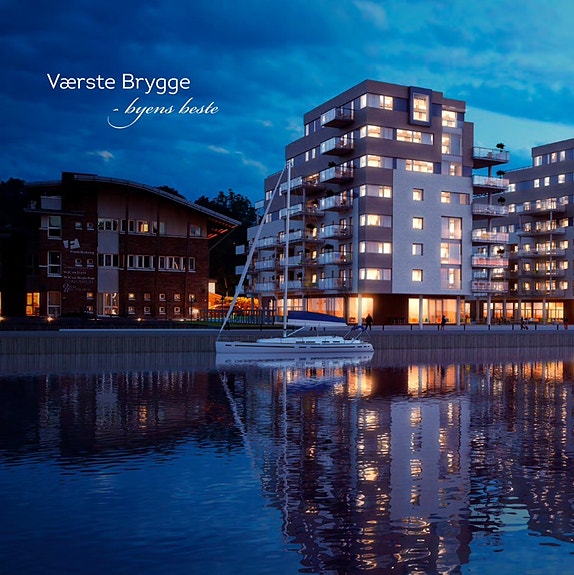 Moderne leilighet ved brygga, vendt inn mot rolig gårdsrom.