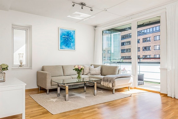 Leiligheten består av bad, gang, stue/kjøkken og separat soverom. Leiligheten har høy standard - en-stavs eikeparkett. Bad med delikate fliser. Leiligheten er malt i hvitt, med store vindusflater som gir gode lysforhold. Det er varme i alle gulv (vannbåren).