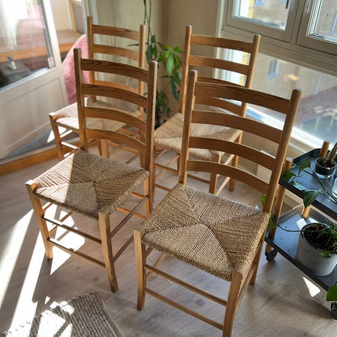 4 jærstoler ( 2 reservert - 2 igjen ) ubehandlet furu. Kan selges par-vis1 500 krOsloLegg til som favoritt.
