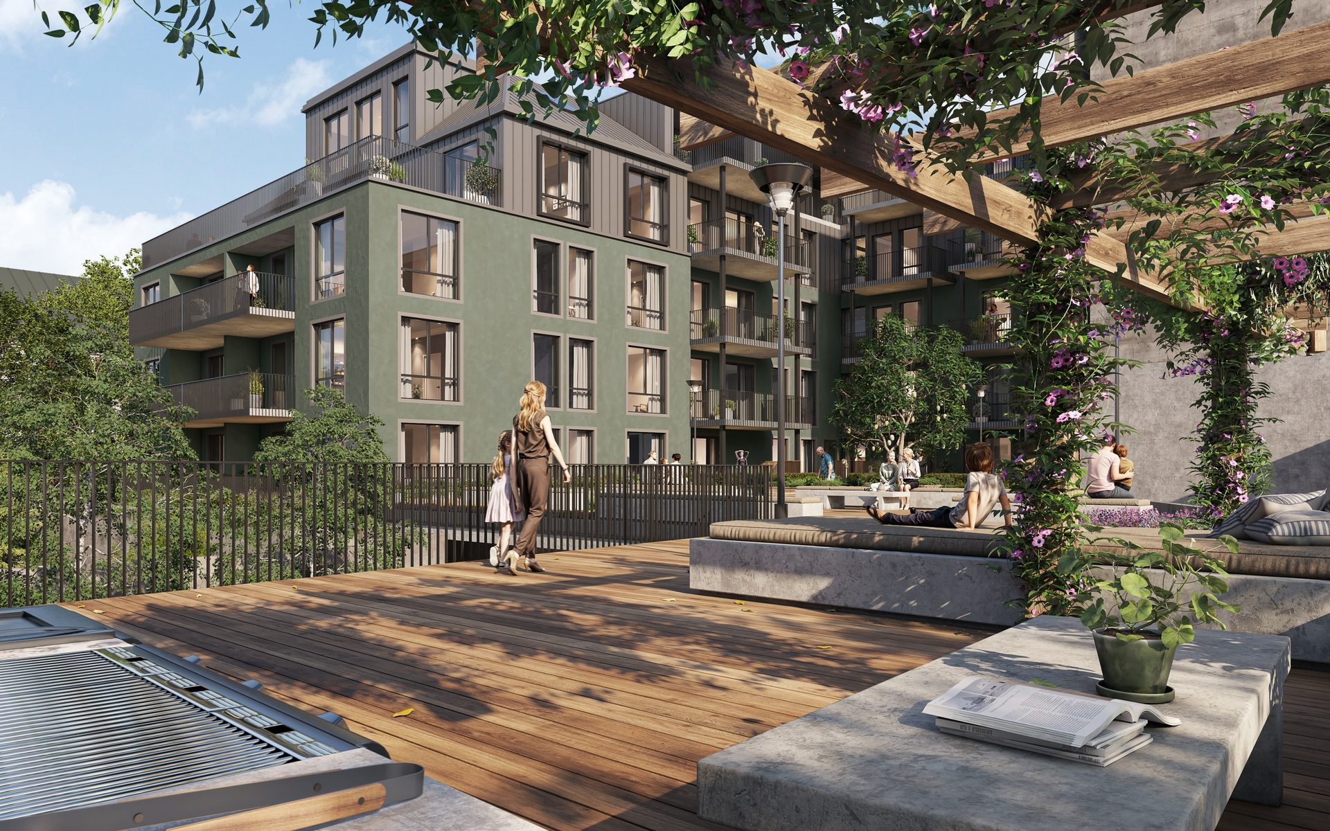 Midt mellom de to byggene i Møllers Gate kommer det et opphevet, grønt gårdsrom – skjermet fra innsyn.
