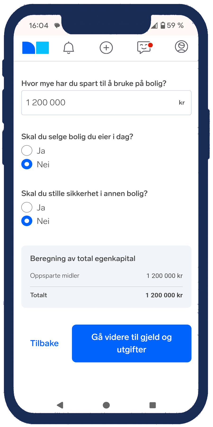 I boliglånskalkulatoren kan du legge inn en tenkt kjøpesum og egenkapitalen din.