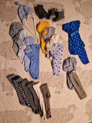 Klespakke, str 74 med bl.a ull (bukse, cardigan, strømpebukse)