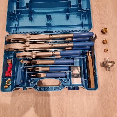 Her er alt du trenger til å bore i fjell, kompressor på 5m3 pr min, 7bar kontinuerlig, god bor hammer på ca 23kg, og slanger ink smørepotte og bor.