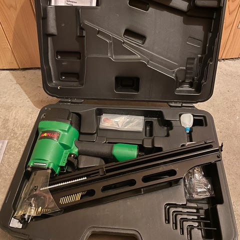 TIL UTLEIE: Spikerpistol og kompressor for rask festing av all listverk