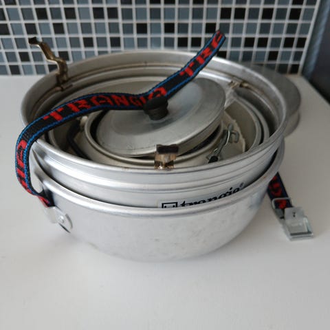 Kokesett fra Helikon-Tex som er helt perfekt tol både korte og lange turer. Flasken kommer med silikonlokk som holder den helt tett under transport og kokekaret har lokk slik at koketiden reduseres. Hver del passer sammen slik at det tar opp minst mulig plass i sekken.