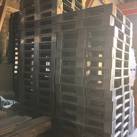 En plastpall er lettere og holde ren enn trepaller. Plastpaller søpler også mindre enn en trepaller.