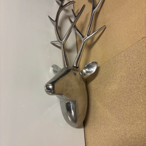 Dette unike hjortehodet med vakre horn av aluminium, vil fungere som et blikkfang og gi interiøret en jakt-atmosfære.