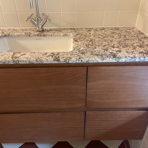 Denne runde håndvasken, laget av naturlig marmor, vil være et stilig tillegg til alle bad og vaskerom. Denne kunstneriske vasken er ikke bare en praktisk vask for hverdagsbruk, men også en pryd i omgivelsene. Den røft formede ytre overflaten, med et inkorporert dekorativt stripemønster, gir et rustikt preg på vasken. På den andre siden, er den runde formen til vasken og virker elegant og myk. Den slående motvekten mellom den røffe og likevel elegante ytre overflaten gjør vasken unik og kunstnerisk. Den indre overflaten er glattpolert, hvilket gjør rengjøring veldig enkelt. Sluken er 4 cm i diameter. Vennligst merk at sluken ikke er inkludert i leveringen.