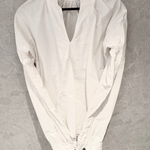 Stoffet er mykt å ha på seg samtidig som den har en eksklusiv look. Rynkene rundt halsen og ermene er håndsydde.
