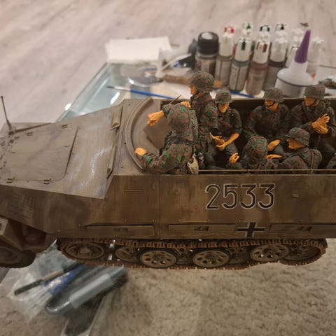 Italeri plastbyggesett av den tyske militær motorsykkelen BMW R75 fra andre verdenskrig. Ble designet av BMW og Zundapp på forespørsel fra det tyske militæret i 1938. Prototyper ble lansert i 1940 og masse produksjon startet i begynnelsen av 1941. Grunnet sin høye pålitelighet ble den populær blant tyske soldater og tjenestegjorde i alle krigsteatrene tyskerne var involvert i fra Nord-Afrika til Russland. Modellen er i skala 1/9.