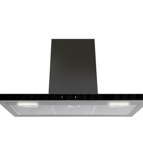 Stilfull design: Ventilatoren kombinerer rustfritt stål og sort glass på en måte som gir kjøkkenet ditt et unikt, luksuriøst uttrykk.
