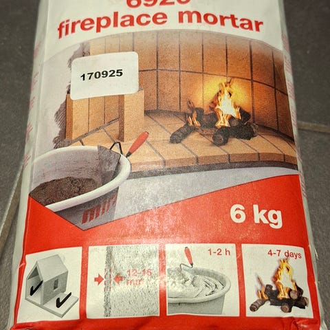 Ildfast mørtel til feks liming /muring av leca innerkjerne og festing av røykrørsinnføring