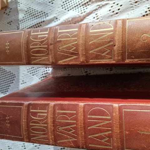 202 sider. Rikt illustrert. Stempler. Noe lettere slitasje nederst på ryggstripen. (140 kr)