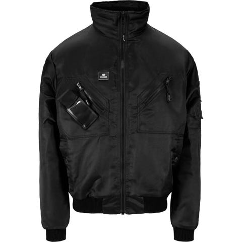 Fiberpelsfôr i bole, vatterte ermer. Glidelås i front, ribb i avslutning på erme og nedkant. Skråstilte brystlommer med glidelås, mobillomme og ID-kortlomme på høyre bryst, framlommer, innerlomme, lomme med blyantlomme og glidelås på venstre erme.