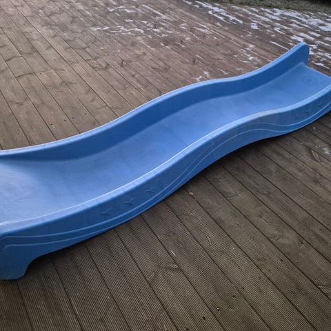Lek og moro – Inkluderer sklie, stige, dør, tre plexiglassvinduer og svart takpapp.