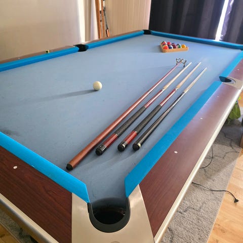 Biljard-bordet er beklædt med et kvalitets holdbart hastighedsklæde der giver præcise skud,
