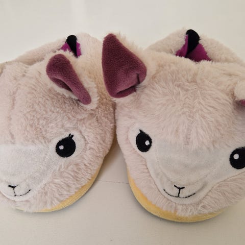 Myke og søte ku-tøfler for småfolk, lengde 10 cm.