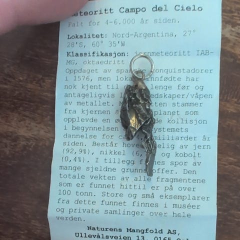Garantert autentisk. Vi har flere vakre og sjeldne meteoritter i butikken, bl.a. fra Månen og Mars.