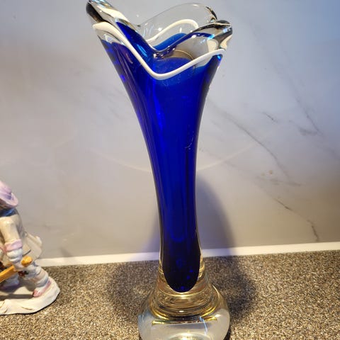Keramikk vase. Signert Carl Olaf. 1970. H11,5 x D16,5cm Carl Olaf Olsen har hatt eget verksted i Sandnes fra 1964. Han lager bruksting i steingods og porselen,med en spesiell blå glasur kombinert med innslag av brunt. - Norsk Kunstnerleksikon