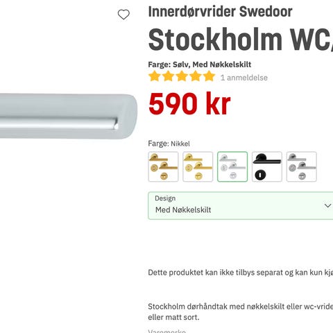 INNERDØRVRIDER SWEDOOR HANDEL MOD 200 RUSTFRI OUTLET KUN 2 STK