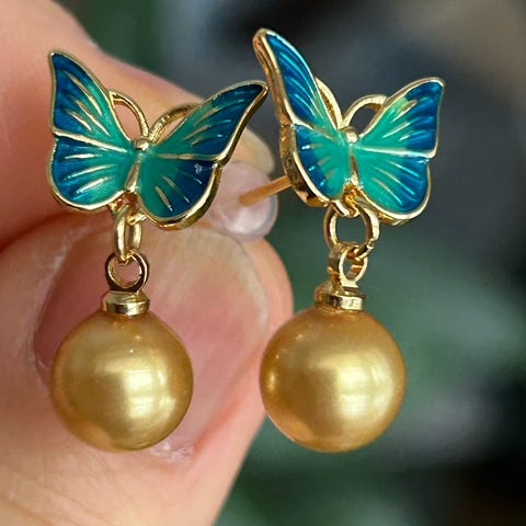 Smykke i hvitt gull 14k med kulturperle 7,0mm og