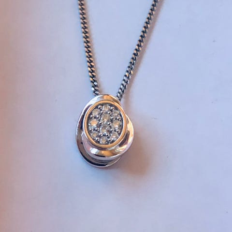 Tilbud. Perlesmykke i hvitt gull med diamant