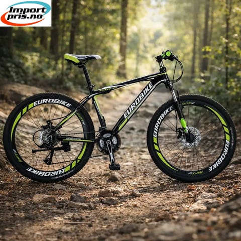 Fullspekket terrengsykkel fra Eurobike, med hydrauliske bremser, 29" hjul, låsbare dempere og 27 gir.