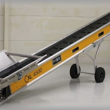 Høyden på transportøren kan justeres ved hjelp av vinsjen for heving og senking. Den kan også brettes i to for lagring eller transport. Transportbåndet er 25 cm bredt og 3,2 meter langt.
