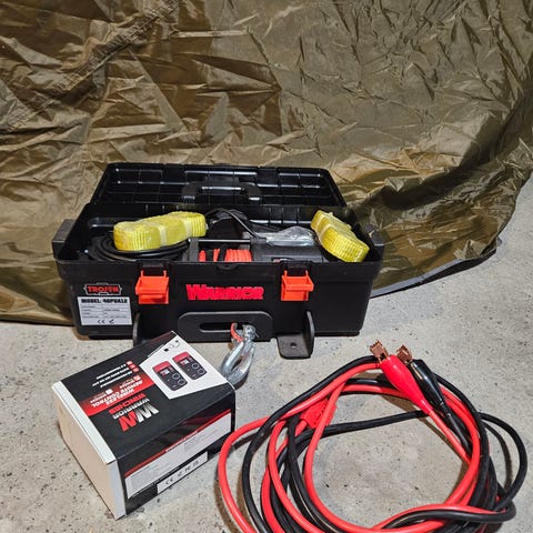 Vi selger også komplette vinsjpakker for montering på henger der batteri, batterikasse i aluminium med braketter, kabler og eventuell montering inngår.