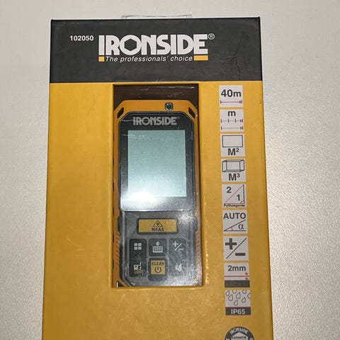 Denne avstansmåleren sjekker med laser hvor langt - kort det er til objektet du ønsker og måle avstand til.