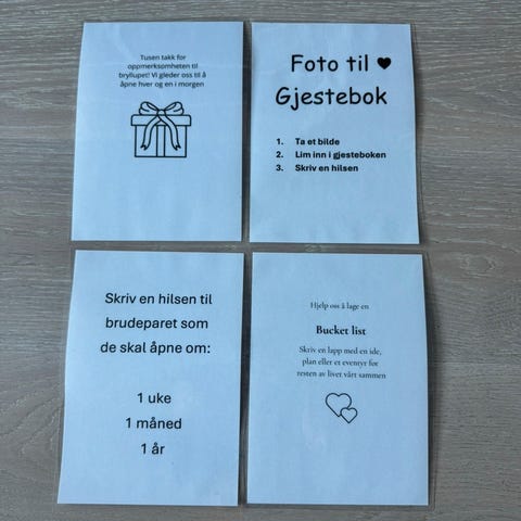 Bordkort / gaveesker til bryllup - brud og brudgom