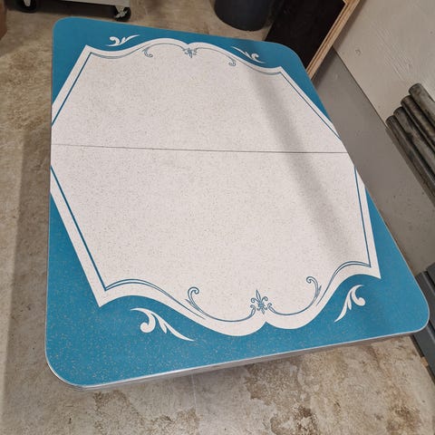 Bordet har 5,5 cm tykk aluminiumskant rundt hele som gir den rette 50-talls følelsen.