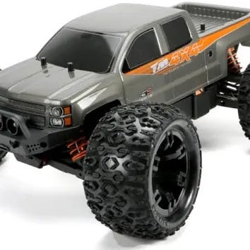 706T fra BSD Racing byr på helt fantastiske ytelser uten å koste for mye! Denne 4-hjulsdrevne 1/10 monstertrucken gir deg alt du kan ønske deg i en nybegynner-truck til en knallgod pris. De fantastiske spesifikasjonene er bl.a en kraftfull 550-motor med kjøleflenser, fuktbeskyttet fartsregulator, doble differ, justerbare oljefylte støtdempere, ekstra kraftfullt fuktbeskyttet styreservo og en velutstyrt 2,4GHz sender! Følger med drivbatteri og lader – akkurat som det skal være i en prisvennlig RTR-bil for nybegynnere.