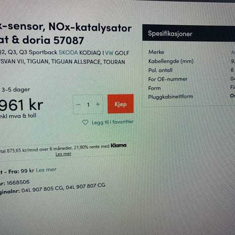 Brukt men i perfekt tilstand komplett front til Skoda Kodiaq Sportline.