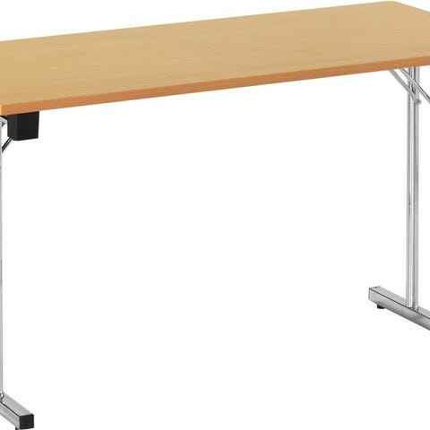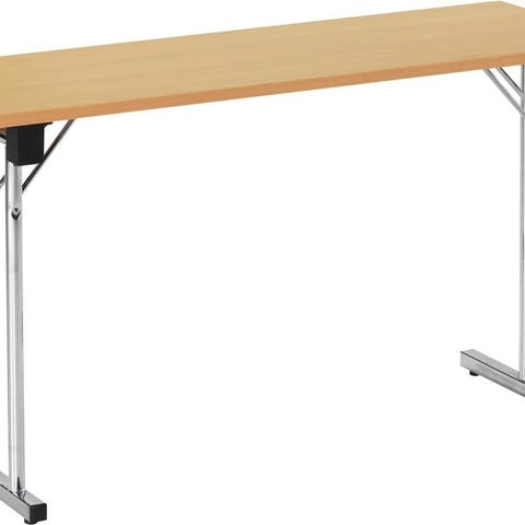 Sammenfoldbart og mobilt konferansebord av høy kvalitet. Det T-formede understellet er belagt med krom, og er enkelt og raskt å slå sammen. Det gjør bordet svært plassbesparende samt enkelt å transportere. Bordplaten er av sponplate E1 norm, og belagt med laminat i valgfri farge.