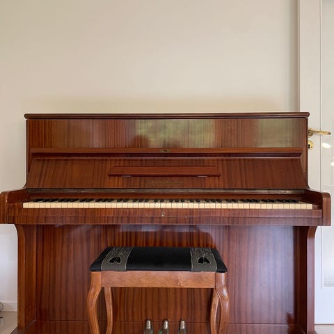 Oslo Musikk selger 1 stk brukt Weinbach piano. Farge lys eik.