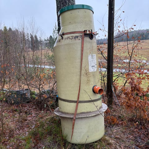 Sett med PowerSpout vannturbin / vanngenerator med 120v spenning og Solis grid inverter gjør at man kan produsere strøm fra bekken og bruke i huset hjemme. Overskuddsstrøm selges ut på nettet.