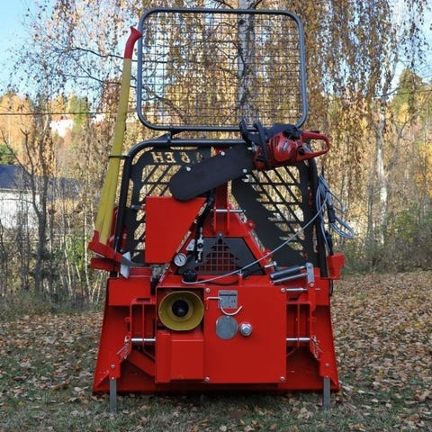 Med denne vedkutteren får du utnyttet all småved du ellers kanskje ville ha kastet, og kløyvd dem opp på en enkel og rask måte. Den har to sekkeholdere som fyller opp per 60 liters sekk på 30 sekunder. Den har 6 kniver festet som et tannhjul som kutter veden fint opp i 110 cm lengder. Den tar stokker opp mot 10cm tykkelse og 2 meter i lengde.